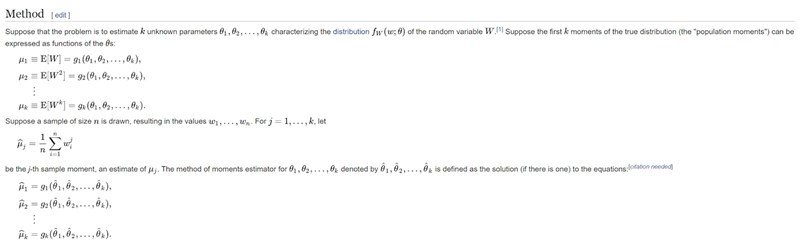 När man använder momentskattning för att skatta parametrarna till en känd fördelning så gör man följande:
