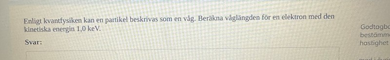 Inte mitt specialområde, men formeln du använt är väl för fotonens energiomvandling till frekvens/våglängd. Den gäller för masslösa partiklar. Om du har massiva partiklar, som en elektron i det här fallet, så gäller de Broglie.