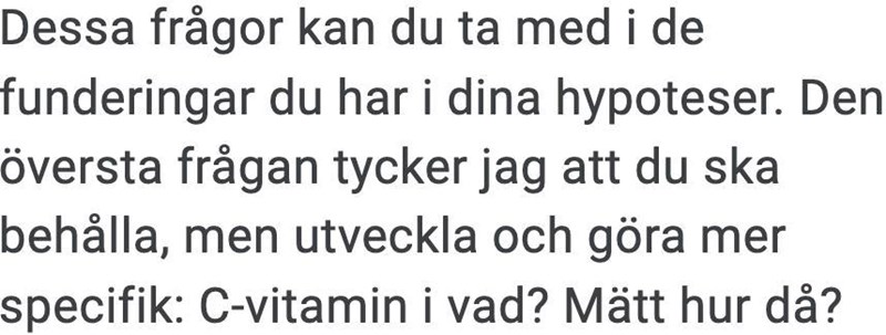 Fick idag en kommentar (se bilden ovanför) av min lärare. C-vitamin i vad? Mätt hur då?