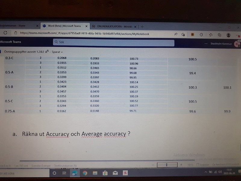Jag vet inte hur jag ska räkna ut Accuracy och Average accuracy i uppgiften?
