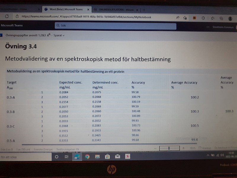 Metodvalidering (om läkemedel), räkna ut noggrannheten.