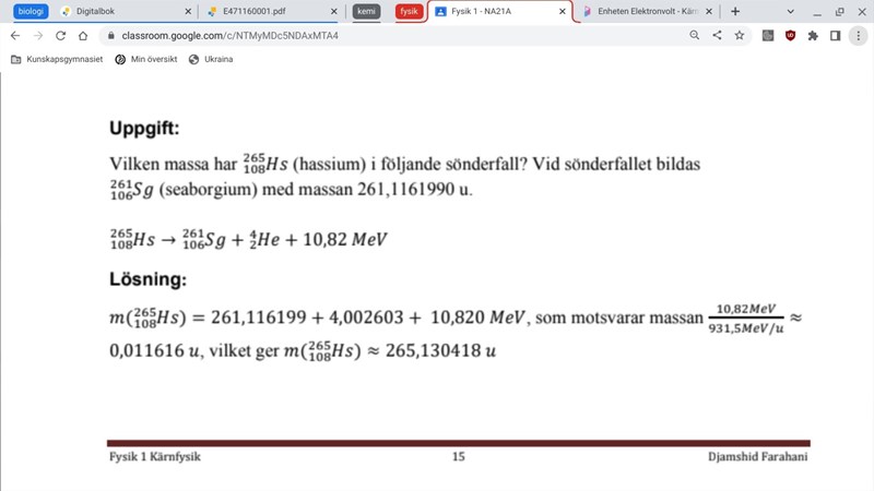 Hur får de 10,82 Mev? Hur får de 931,5 U och hur får de 0,011616 till 265,130418
