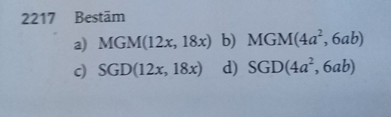 Sgd: det största tal vi kan dela båda tal med utan att få en rest. Detta fås genom att kombinera talens identiska faktorer.