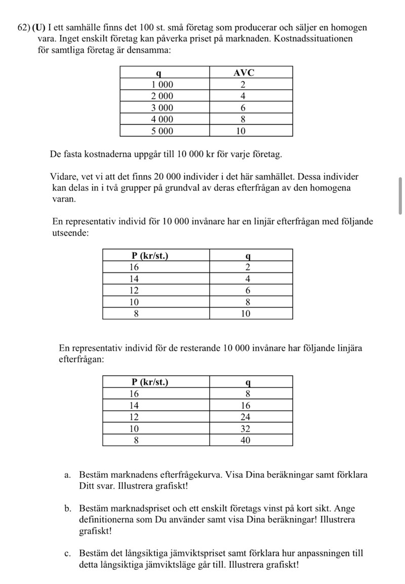 Jag gjorde uppgift a och förstår inte hur jag ska göra på b. Jag tänkte att jag har efterfrågekurvan från upg a: