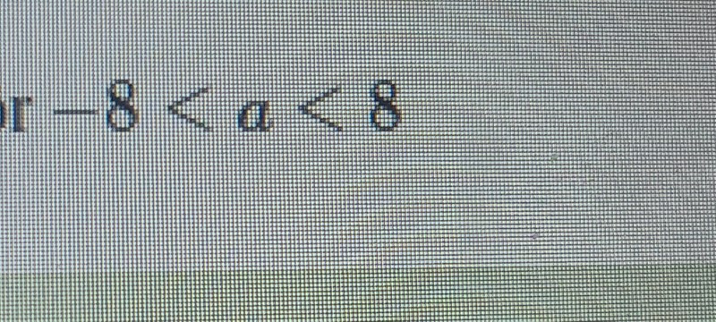 a i det här fallet kan vara alla tal mellan -8 till 8, men INTE -8 och 8.