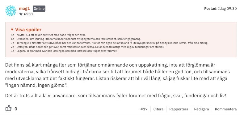 Mindre text i "spoiler" än i inlägget