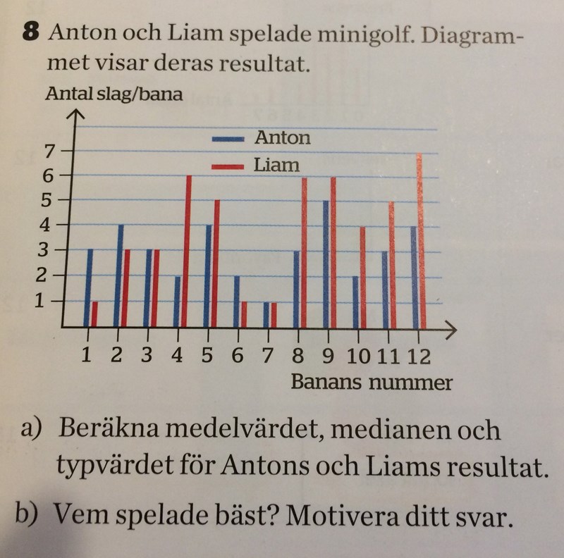 Den som jag behöver hjälp med har räknat medelvärdet och då har Liam fått mer och Antol mindre men jag vet att inom golf räknar man typ tvärtom den som får minst med poäng .