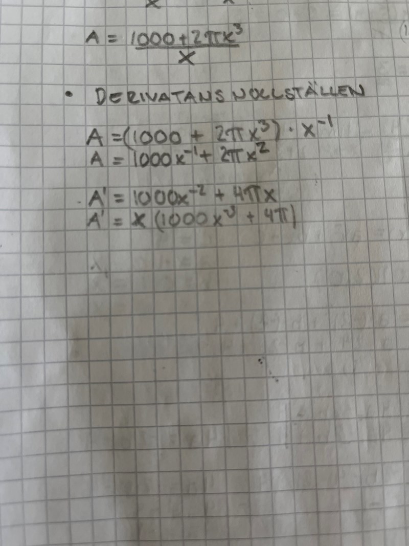 Har fått fram (1000+2•Pi•x3)/X genom att ta