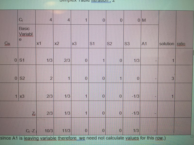 Svaret ska bli att och och vi får därmed z=1, men jag förstår inte hur man får fram värdena på x av tabellen. I sista raden ser vi ju att x1=10/3, x2=11/3 och x3=0