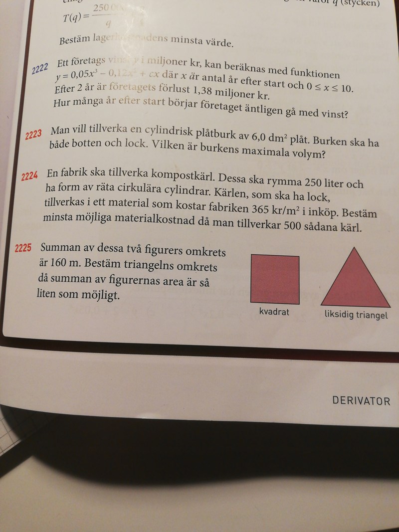 Yes, 2225 är uppgiften. Kom på att svaret inte kom med på den andra bilden, men om jag har gjort rätt borde det bli 22.2, men det står "ca 90 m" i facit