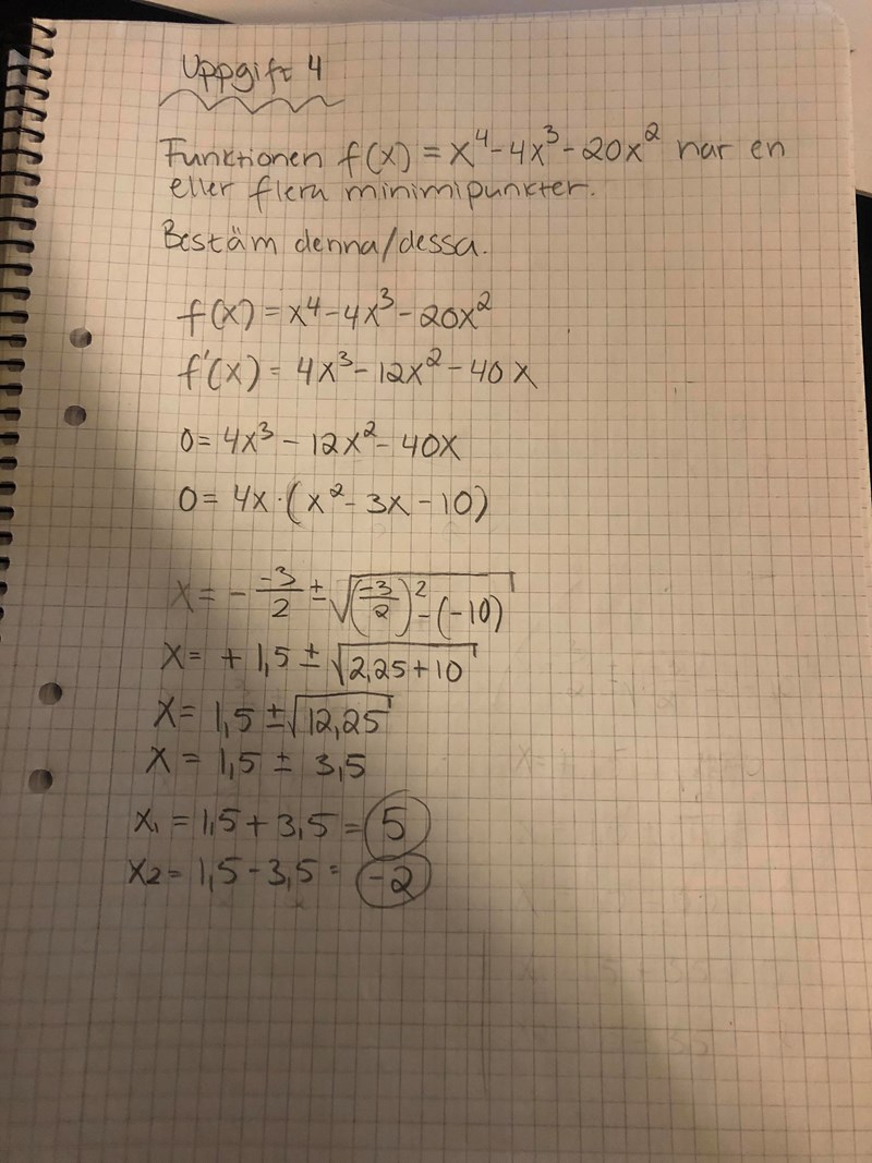 Så nu är jag klar med uppgiften? Svaret är alltså att -2 och 5 är minimipunkter?