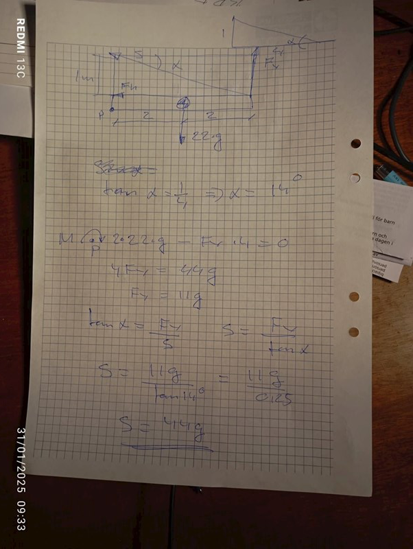 Nja, inte riktigt rätt. S är den vertikala kraften delat med sinus (som Ture skrev) för vinkeln, inte tangens för vinkeln.