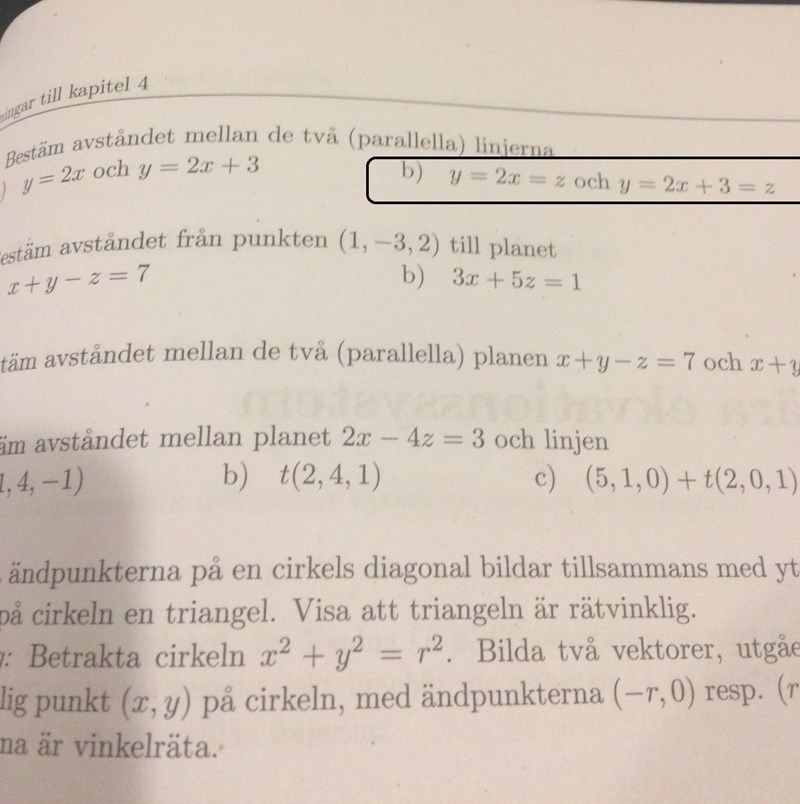 Bestäm avståndet mellan de två parallella linjerna