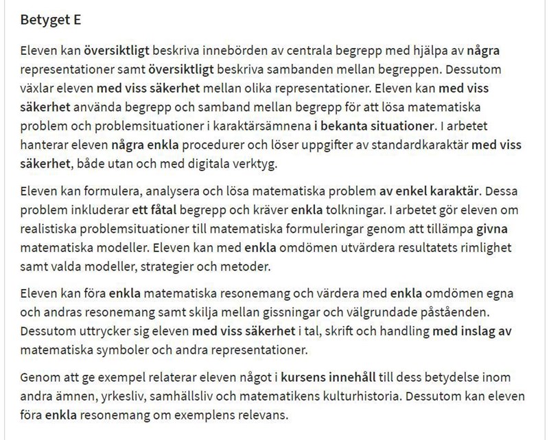 vad är det minsta de ska kunna för att bli klar med E betyg när det gäller 1b och 2b, finns det info om detta på nätet?