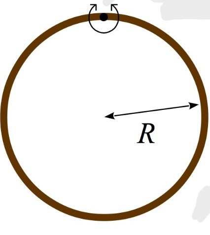 Vi vill att ringen ska rotera runt den fixa axel högst upp på ringen, så min fråga är om vi roterar ringen ett halvt varv dvs axeln blir i nedersta punkten av ringen, blir hastigheten där högst upp noll?