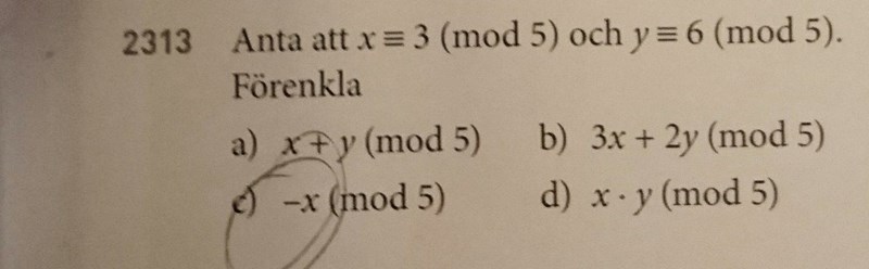 x är också kongruent med minus två, egentligen, men den minsta positiva resten brukar användas.