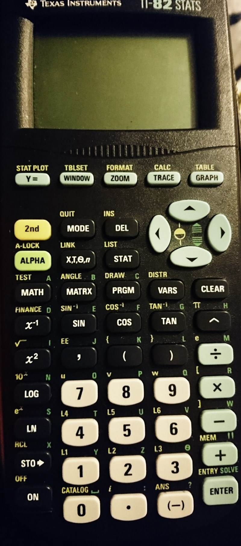 @Serious Cee: min kalkylator ger mig ''ANS!'' varje gång jag gör det. Har försökt trycka på DEL och CLEAR men TI:n vill inte gå vidare med våra liv...