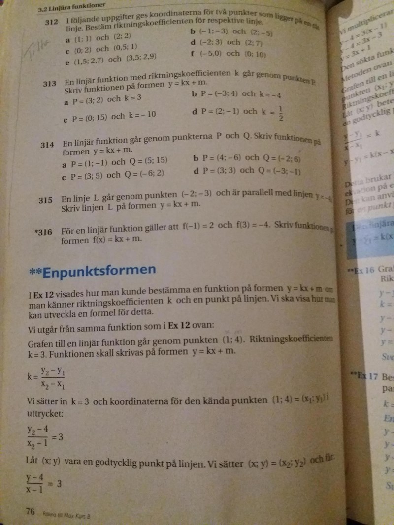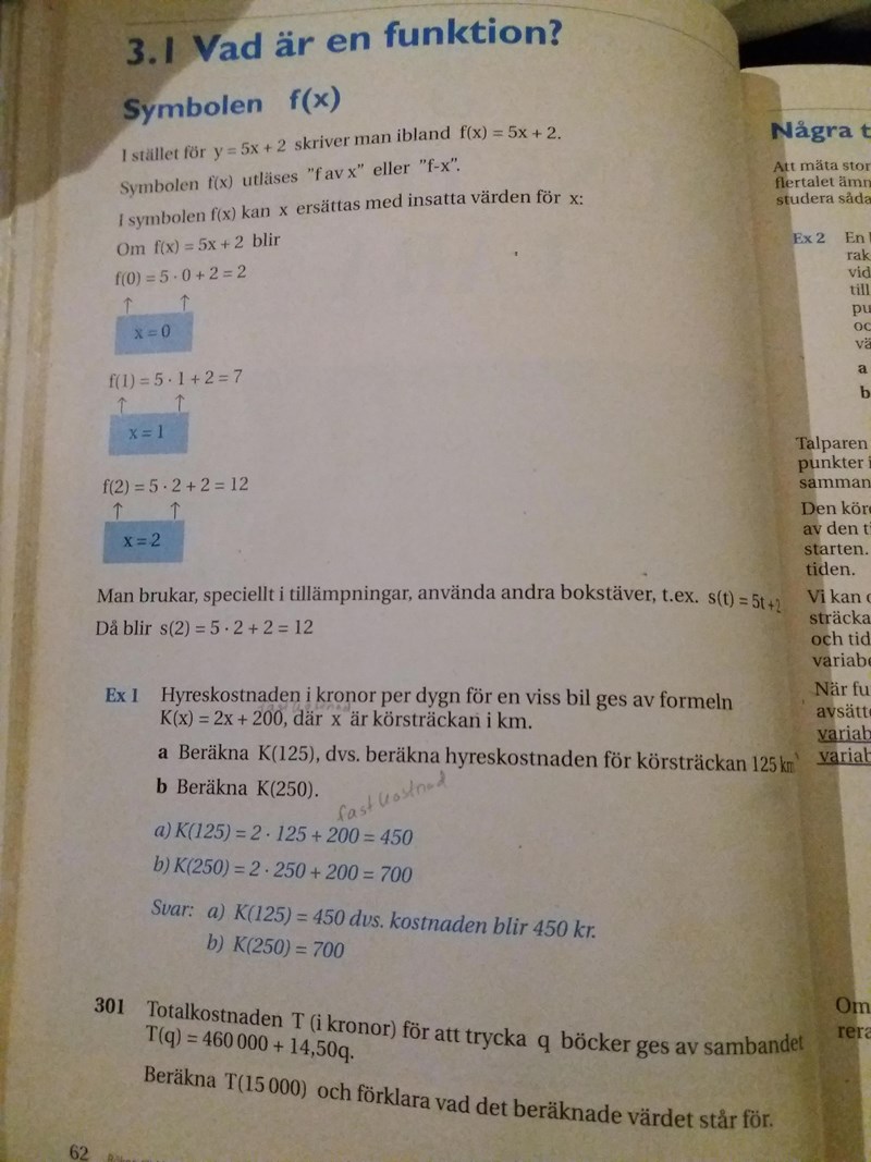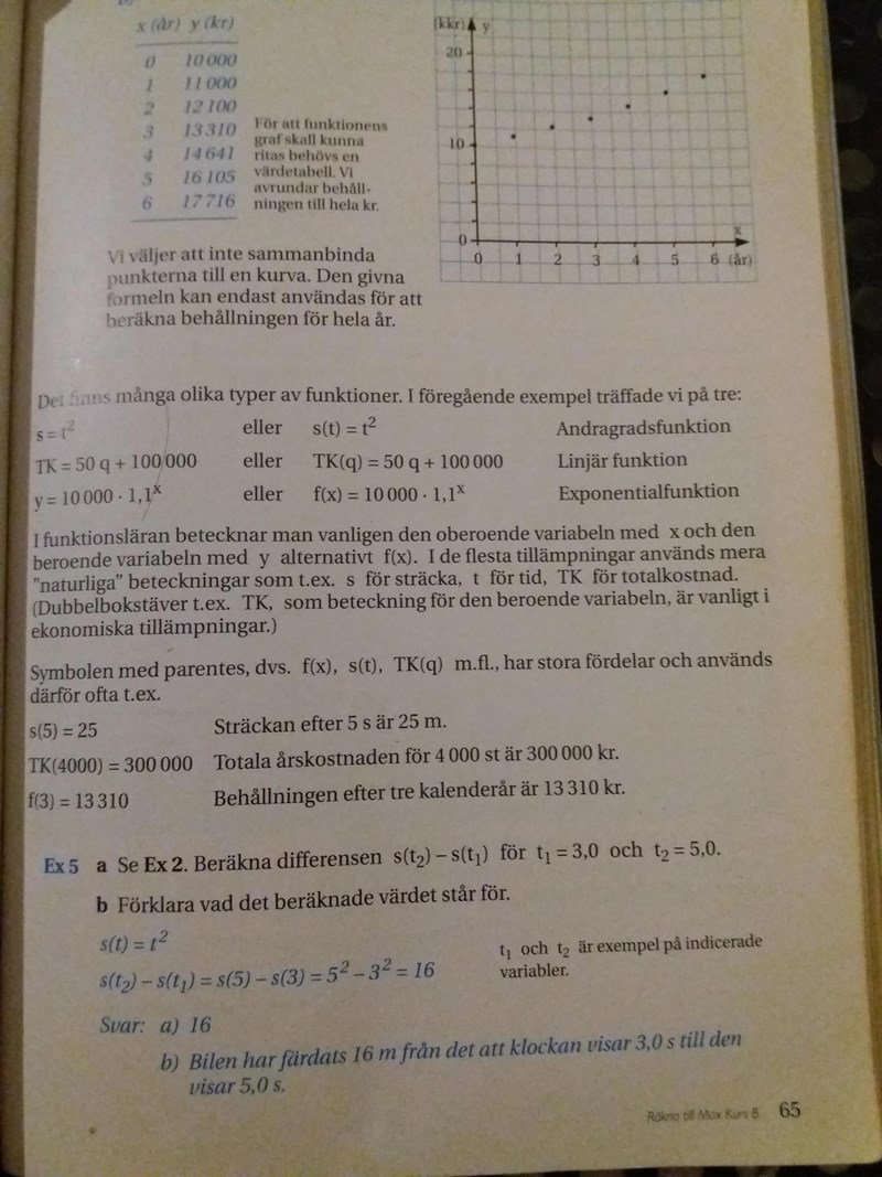 Jag höll ett tag på med funktioner och var tvungen avbryta med en gång. Då var jag inne i matte 2. Jag vet ca var, men om uppgiftens nummer finns med, vågar jag inte säga. Helt plötsligt lämnade jag matte 2. Tänkte om det här fortsätter kan jag snart inte läsa matte.