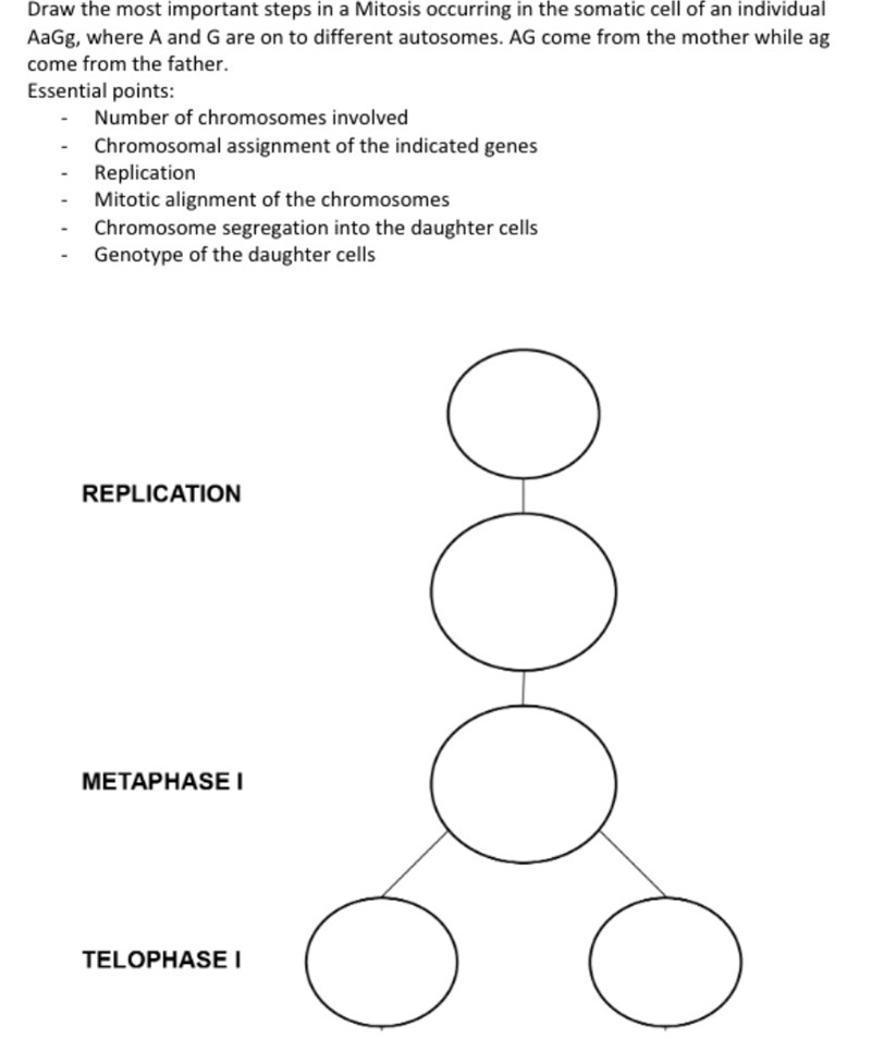 Det är knas i sista bubblorna. Om du skriver ut genotypen (som uppgiften frågar efter) så ser du att det inte kan stämma med vad du skrivit ut, för den ena cellen har AAGg och den andra har aagG - genotypen bibehålls under mitos.