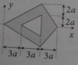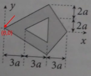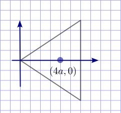 Den lilla triangelns tyngdpunkt (eller hålet) ligger i (5a,0)(5a,0)
