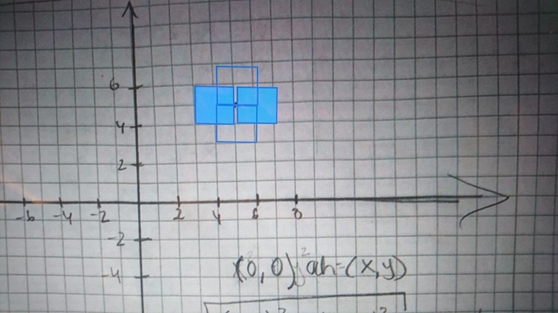 Jaha ,du menar att om vi utgår från en och samma hörn (4,5) så får vi 2 kvadrater. Jag trodde att du menar hur många kvadrater som går att bilda som Har mittpunkten (5,5)