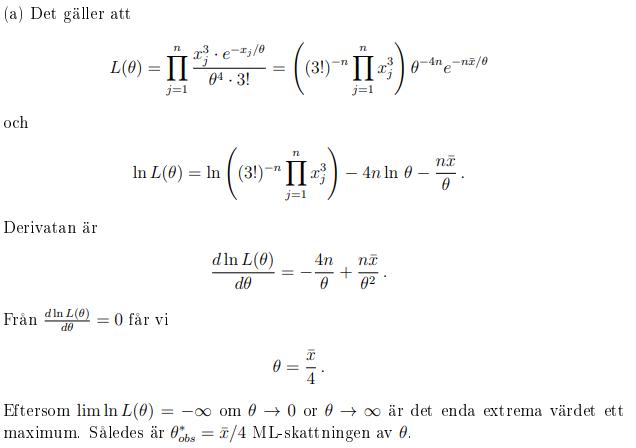 Hondel skrev:De romerska pelarna är bokstaven stora pi () och det betyder produkt (liknande som att stora sigma betyder summa). Alltså, du har n stycken datapunkter som är oberoende av varandra, och likelihooden av dessa är produkten av alla . Eftersom 1/3! inte beror på x kan man flytta ut den utanför produkten, och eftersom det är n stycken faktorer tar man detta upphöjt till n, och minusteckneet är fel att det står 1/3! = (3!)^-1