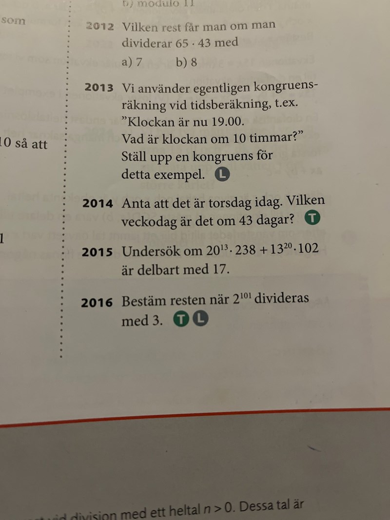 Vi undersöker om 238 och 102 är delbara med 17. Ja det är de och vi får rest noll.