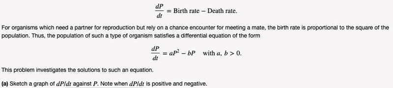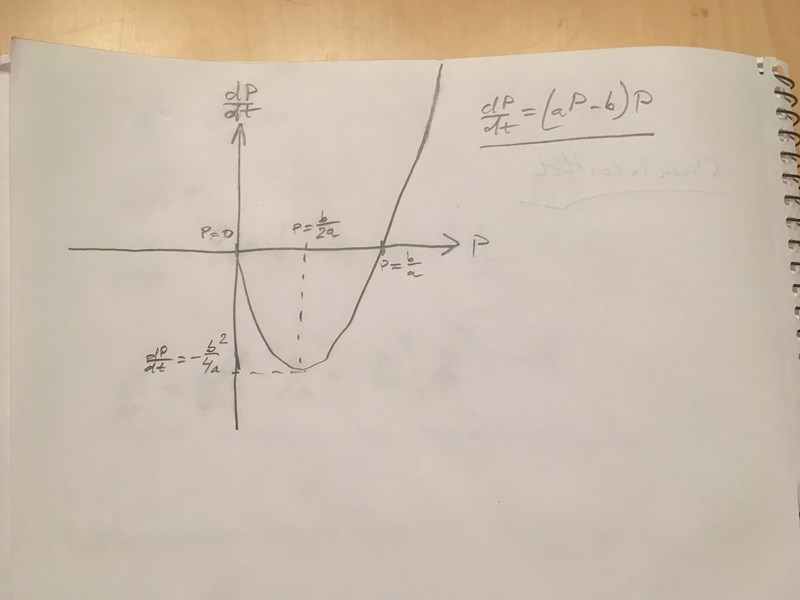 Hm kan du utveckla hur jag kan använda liknelsen med y=.... ? Men om jag utgår från det du säger kan man säga att dP/dt < 0 är för (0,b/a)? Fast hur blir det för den positiva delen. Tänker att det då borde vara (-infinity, 0), (b/a, infinity) ?