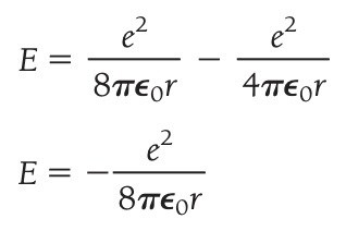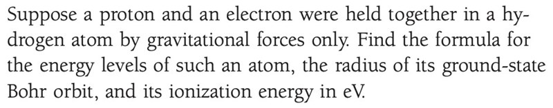 Intressant att inte energinivåerna beror på massorna eller Newtons gravitationskonstant. Är det verkligen rimligt? Visa din härledning.