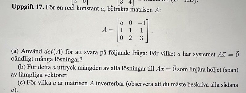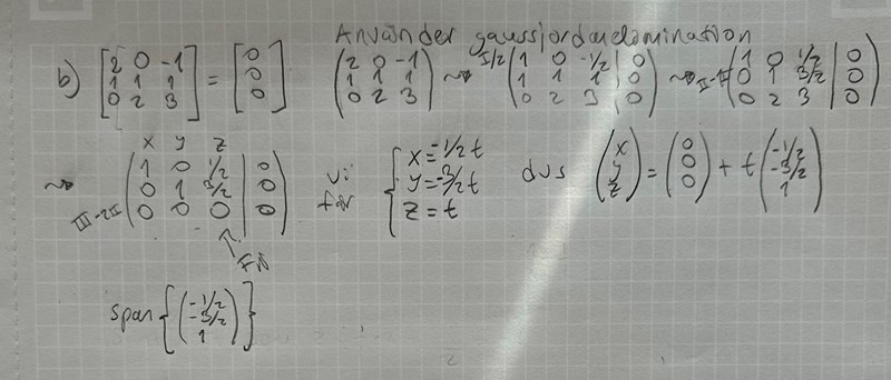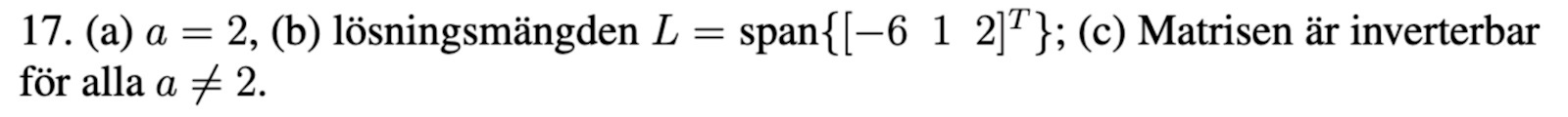 Enligt nedan fråga b, vad är det som blir fel i min uträkning? Svaret ska vara span = (-6 1 2).