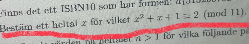Vilka tal 0 till 10 blir 5 mod 11 om man tar dem upphöjt till två? Dessa tal är kvadratrötter till 5 när man räknar mod 11.