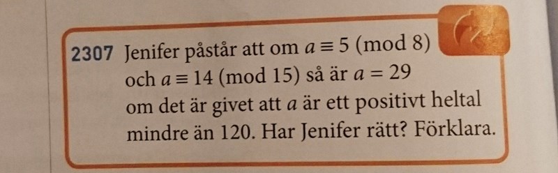Eftersom 29 uppfyller villkoren så måste a=29+n, där n är delbart med både 8 och 15. Vilket är det minsta talet som är delbart med 8 och 15?