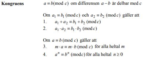 tex 32864 består av 30 000 + 2000 + 800 +60 +4 eftersom alla tal som slutar på 0 är delbara med 5 så blir resten 4. Och samma gäller alla talen, 403982 har resten 2 (mod 5) osv. Så du multiplicerar resterna för att få det tal som är kongruent med detta tal vilket är 4*2*3 (mod 5) = 24 (mod ) som är kongruent med 4 (mod 5)