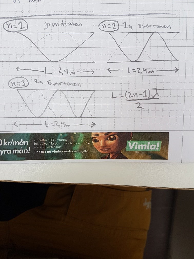 Vilka toner är möjliga i en öppen orgelpipa som är 2,4m lång ?