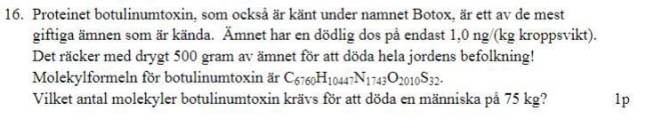 Jag vet att vi har en massa på 75ng. Men jag vet inte riktigt hur jag ska gå vidare därifrån. Jag testade att använda mig av molmassan för att sedan få ut substansmängden men jag kom ingen vart.