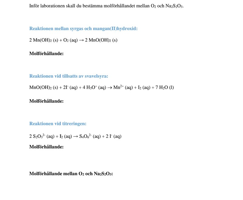 Molförhållande syrgas och natriumtiosulfat