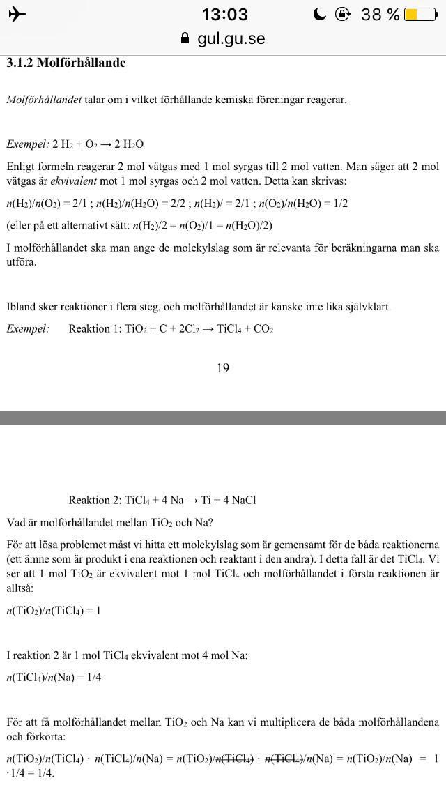 Jag tycker molförhållanden krånglar till det i onödan, men vissa personer tänker på det sättet. Jag skulle föredra att skriva att 1 mol titandioxid motsvarar 1 mol titantetraklorid som motsvarar 4 mol Na, så 1 mol TiO2 motsvarar 4 mol natrium.
