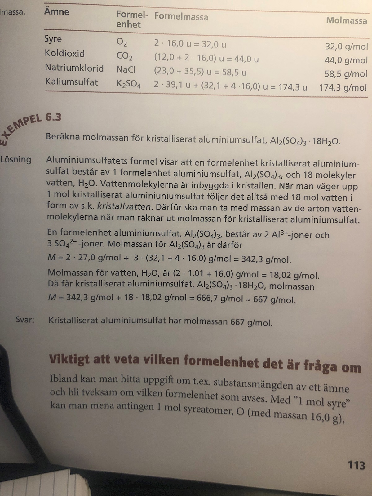 I en uppgift ska jag "Beräkna molmassan för kristalliserat aliminiumsulfat" När de skriver så föreställer jag mig att man ska multiplicera molmassorna då det är ett · tecken emellan faktorerna. Däremot i lösningen så adderar man molmassorna? Det är 342,3 + 18 · 18,02. Vad är det jag missar? Betyder tecknet något annat här?