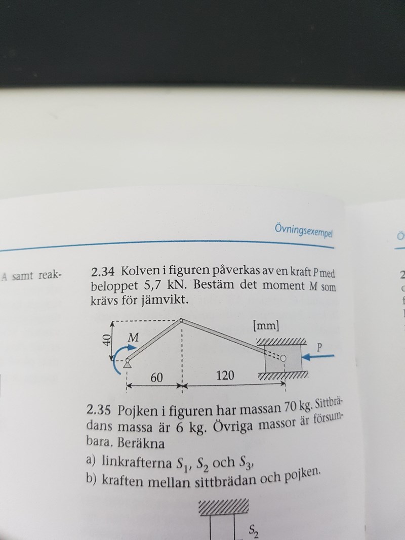 Ja. Frilägg den vänstra stången: Den påverkas av momentet M och en kraft i övre punkten. Beräkna storlek och riktning på den kraften.