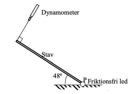 Fråga: Frilägg staven och beräkna kraften från dynametern?
