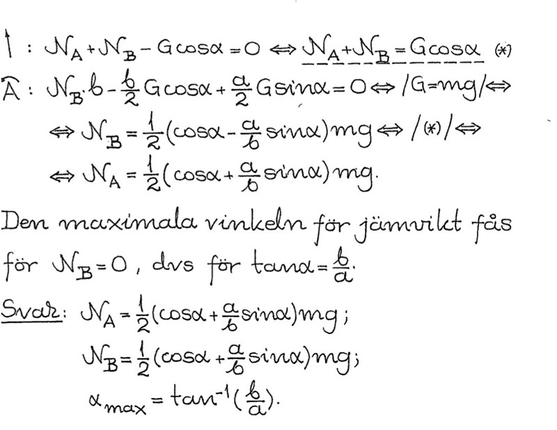 Jag förstår hur dom har gjort för att skriva ut en kraftekvation för den sneda pilen. Men hur har dom fått ut ekvationen vid moment A? Det är så ologiskt....