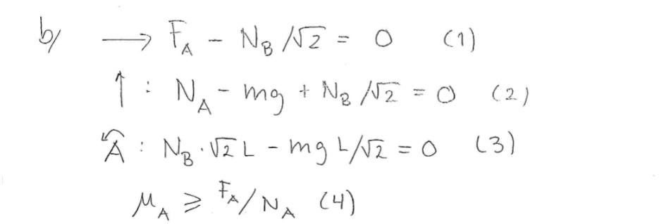 Har en sista fråga här. Om vi hade en friktion kraft (Frb )där uppe vid F, skulle den kraften (Frb) försvinna om vi tar moment kring punkten A?