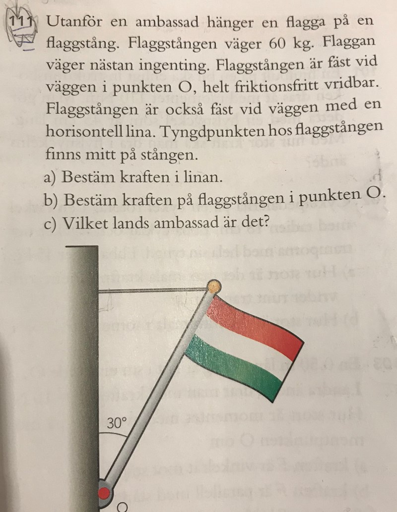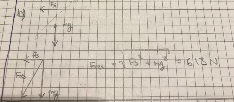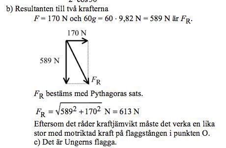Aha, enligt Newtons tredje lag. Är det det de menar i sista meningen i facit eller menar dem att den resulterande kraften är riktad snett uppåt vänster?