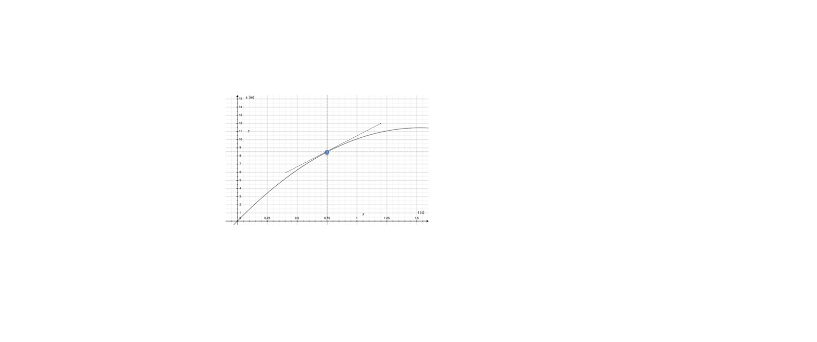 Jag ritade nämligen bara en tangent där punkten ligger. Punkterna blev då (0.4s;6m) (1,2s;12m) = v = (12m-6) / (1,2-0.4s) = 6m/0.8s = 7.5m/s