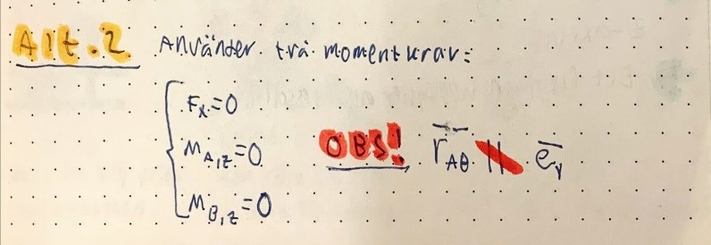 2. Tre moment är noll, med kravet att de momentpunkter man valt ej bildar en rät linje