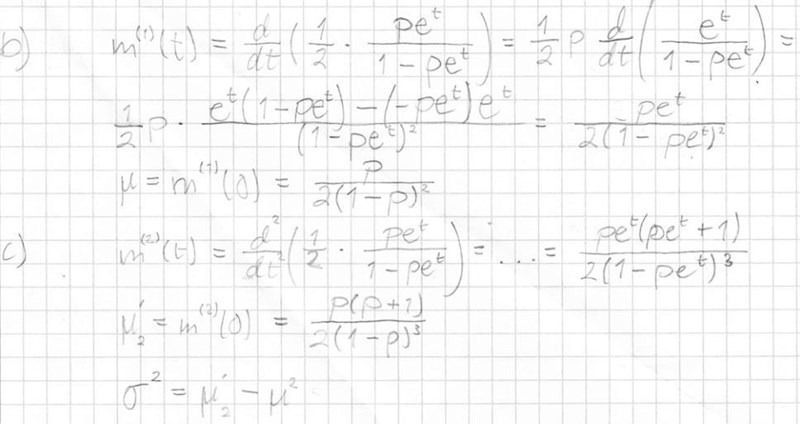 Jag lyckades med er hjälp få a)-uppgiften rätt, men någonstans i b)-uppgiften gick det fel, vilket resulterade i att c) också blev fel. Det jag har gjort för att få väntevärdet är att derivera , jag tror ni förstår hur jag har gjort i min lösning nedan.
