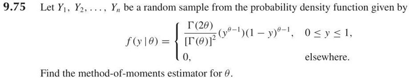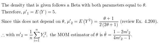 Ja, jag hittade en lösning, begriper inte så mycket dock. Men det stämmer att båda parametrarna är lika med theta, därför blir E(Y) = 0.5 (Notera att det står 5 i lösningen, men det kan helt enkelt inte stämma)