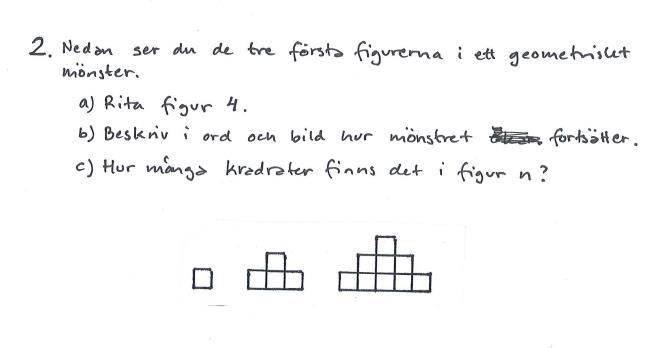 Jag räknar figur 1 med 1*1, figur 2 med 2*2 och eftersom varje figur ökar med +2 varje steg..