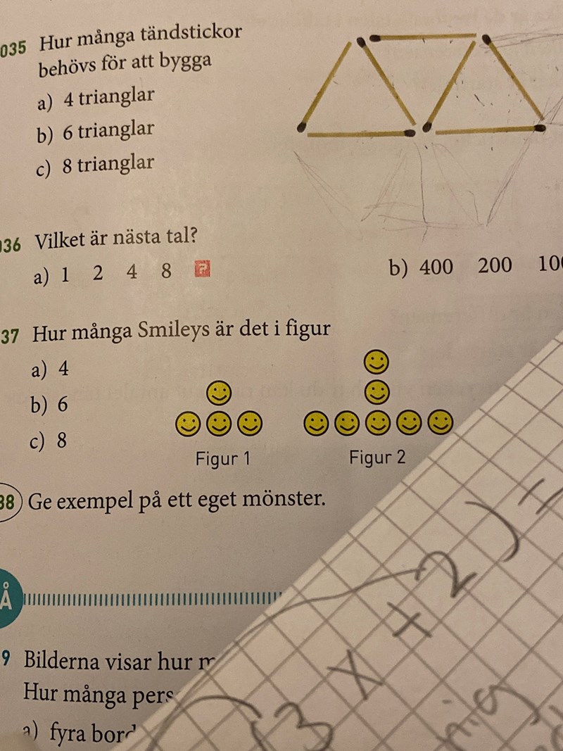 man behöver 9 stickor väl för att göra 4 kvadrater! men på facit står 8 jag fattar inte?