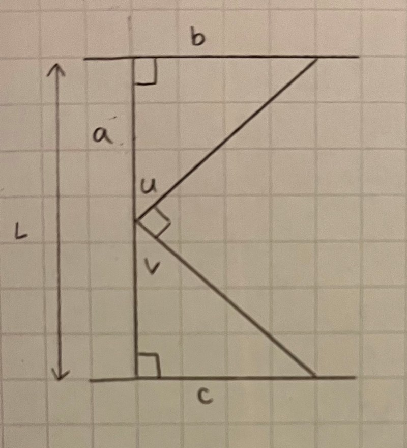 Då u och v har en rät vinkel mellan sig och båda ligger mot den räta linjen med längd L så finns det ett samband mellan u och v.